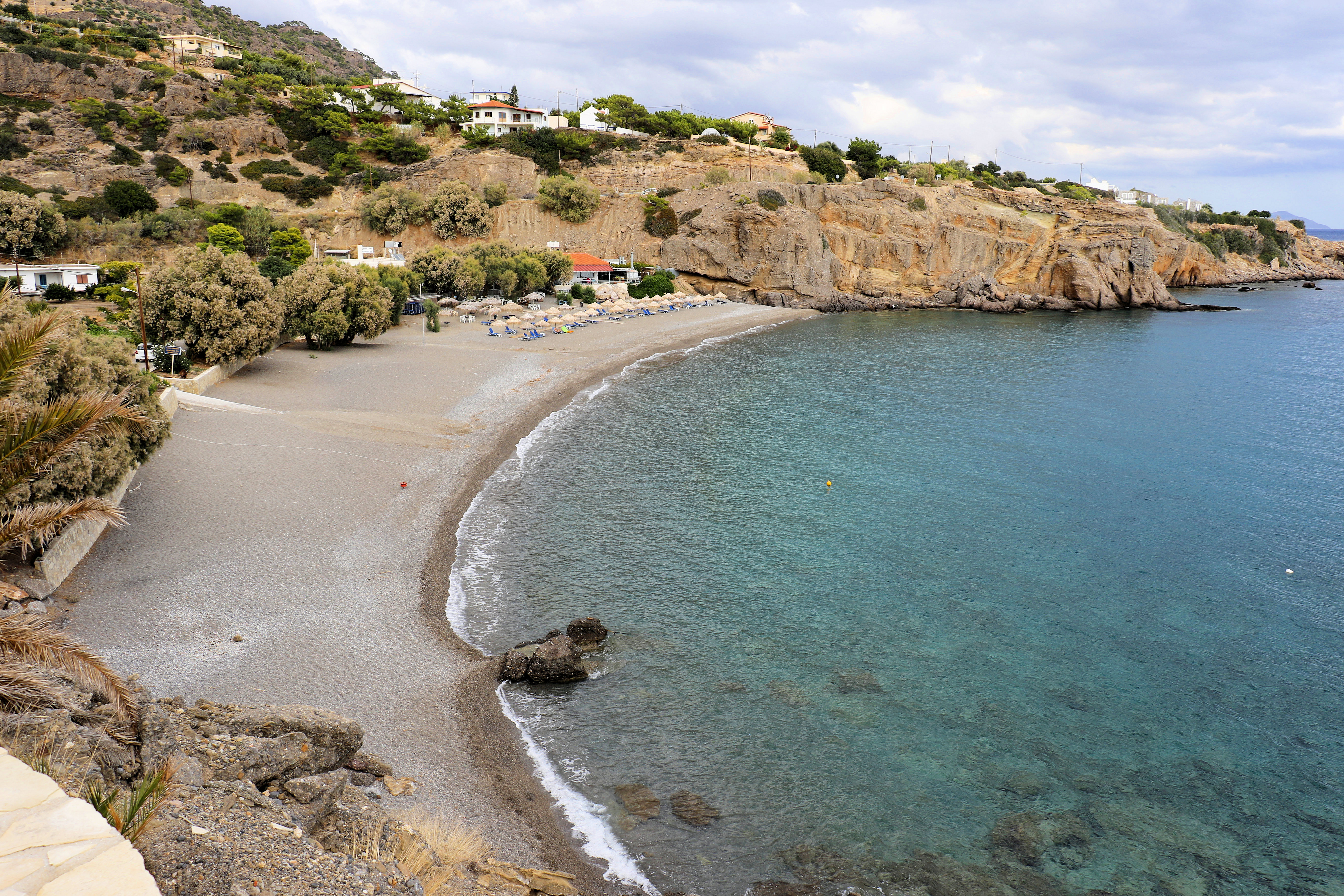 アクリア湾は、クレタ島の南東にあるビーチで、イエラペトラとマクリスギアロスのほぼ中間にあります。. 南海岸で最高のビーチの1つです。, 特に湾の形状が浜辺や水中に避難所を提供する風の強い日には.