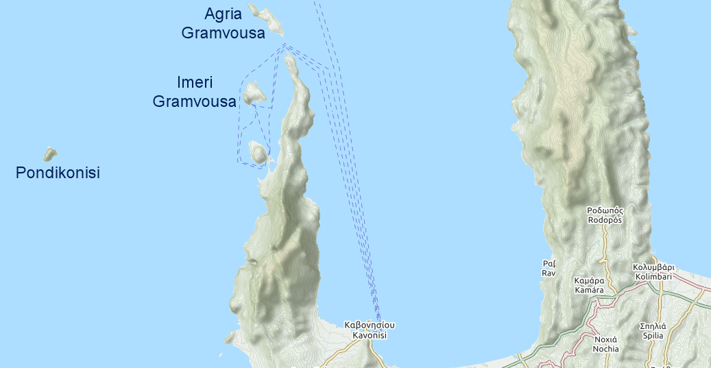 Sarantos Nikos has filmed a video of the Grandes with a drone which gives you an idea of the clarity of water and the small size of the islands. Also visible in the video are parts of the mainland and the nearby island of Elasa.