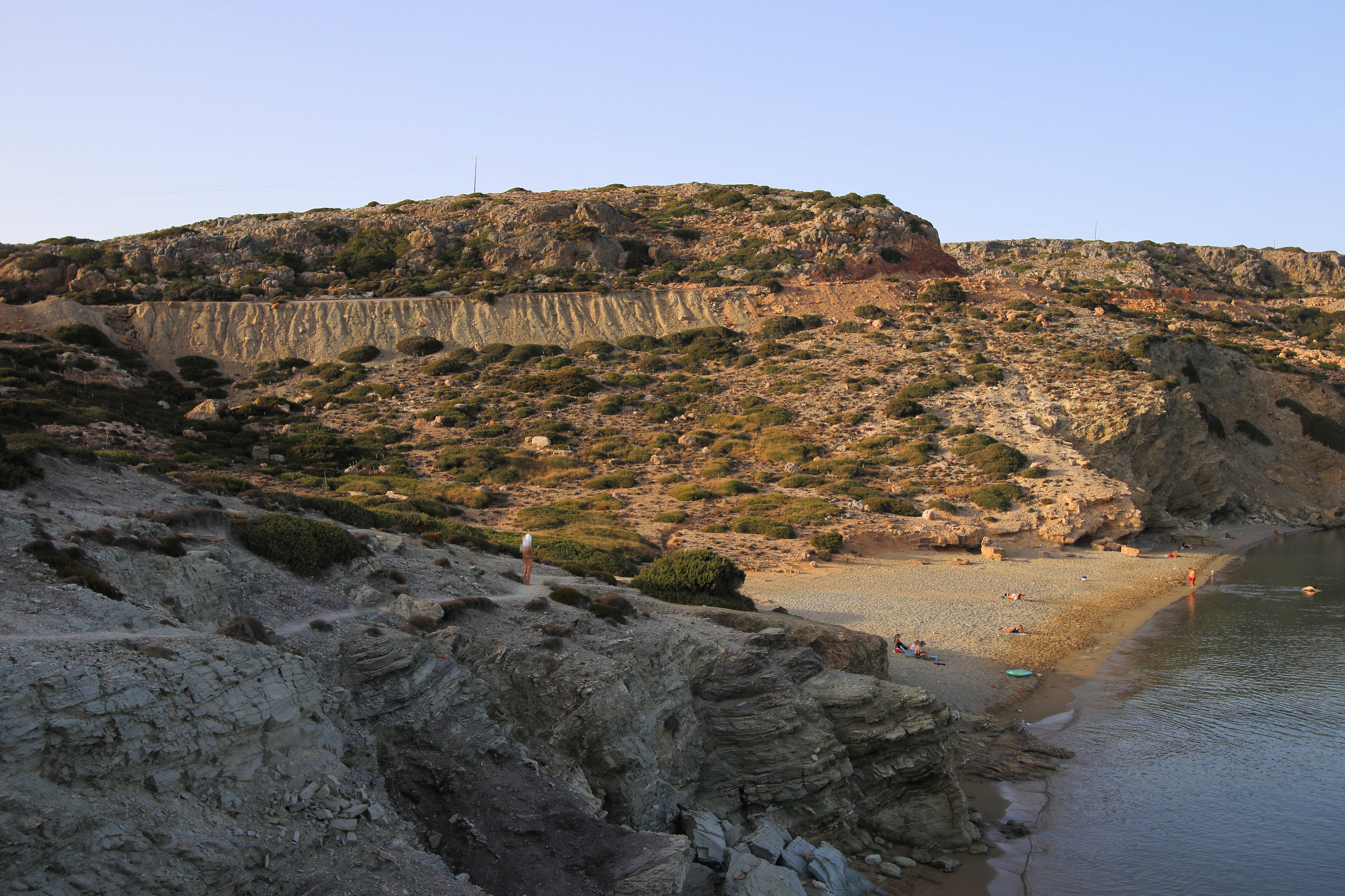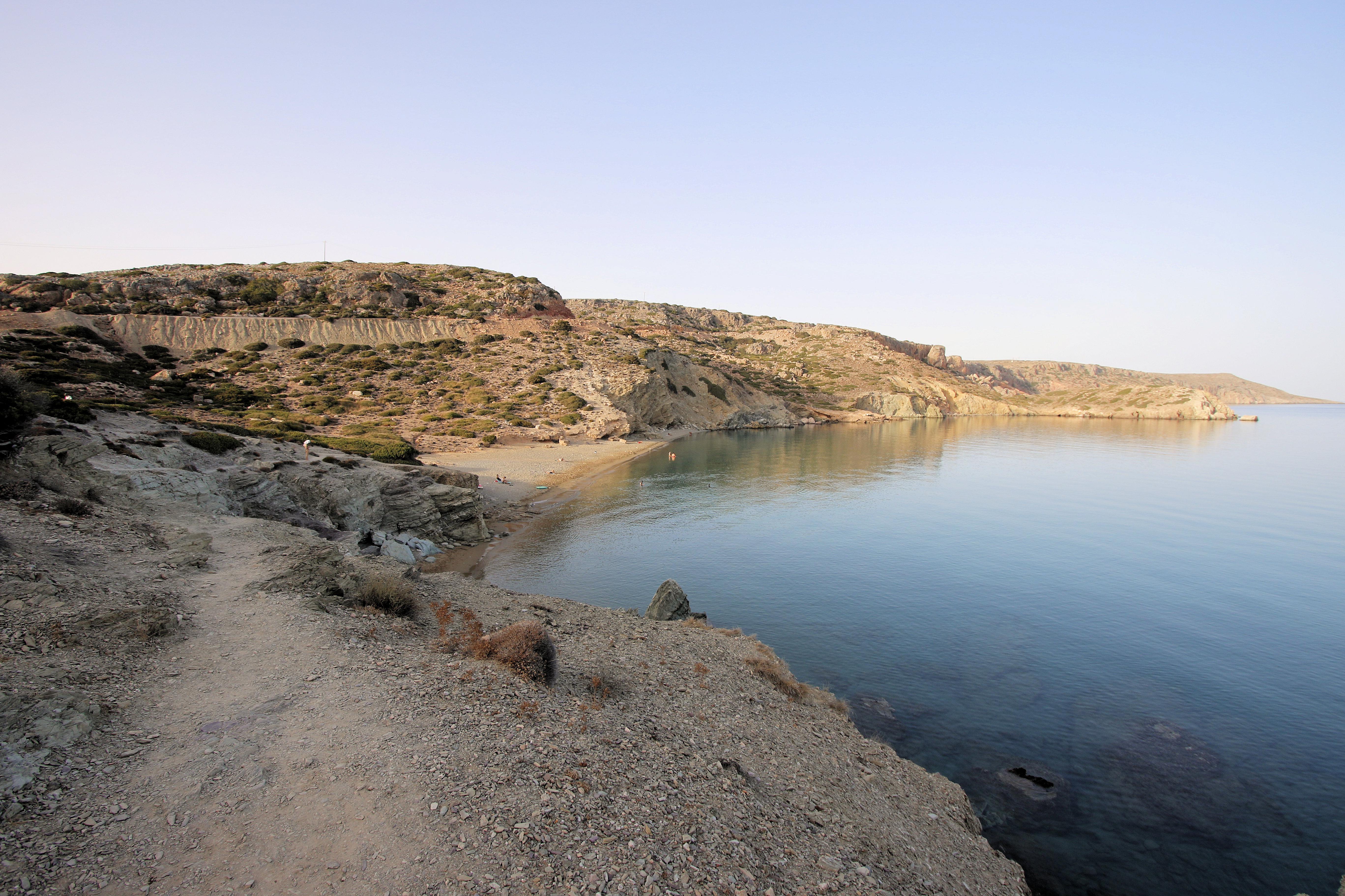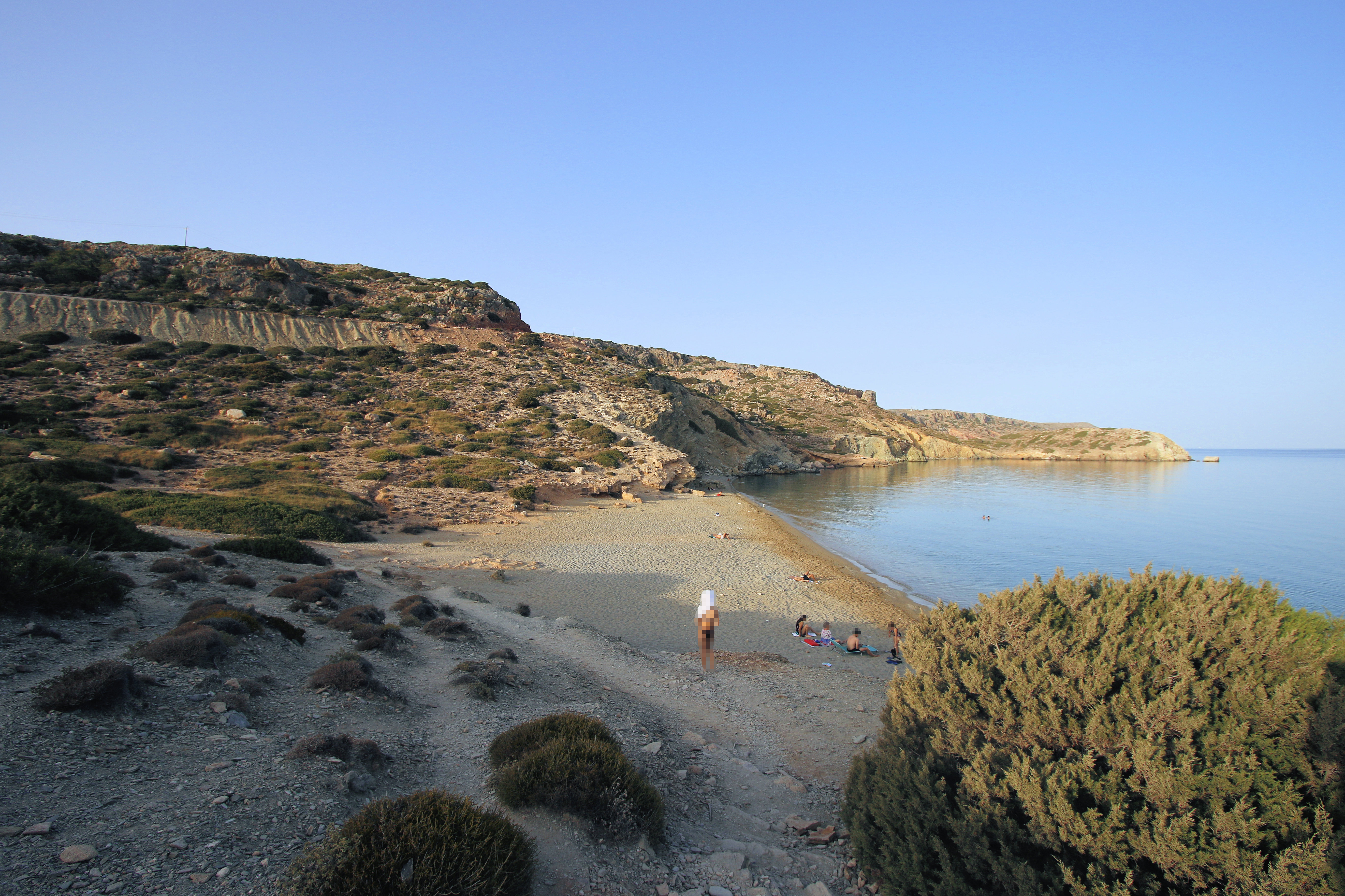 Itanos usually has a number of people there but it doesn’t get especially busy so it’s perfect for people who like a peaceful beach. 马路, and the informal carpark at the end of it, 导致中间 3 beaches which is the smallest, which is barely a beach at all really. The largest beach, also known as Erimoupolis beach is immediately to the north of the central beach and is the most popular. The southern beach is a short 250m walk, 越过古镇的废墟. Unlike a lot of beaches on Crete, 所有 3 beaches at Itanos are sandy, and the water is beautifully clear. There are pictures of all 3 在画廊