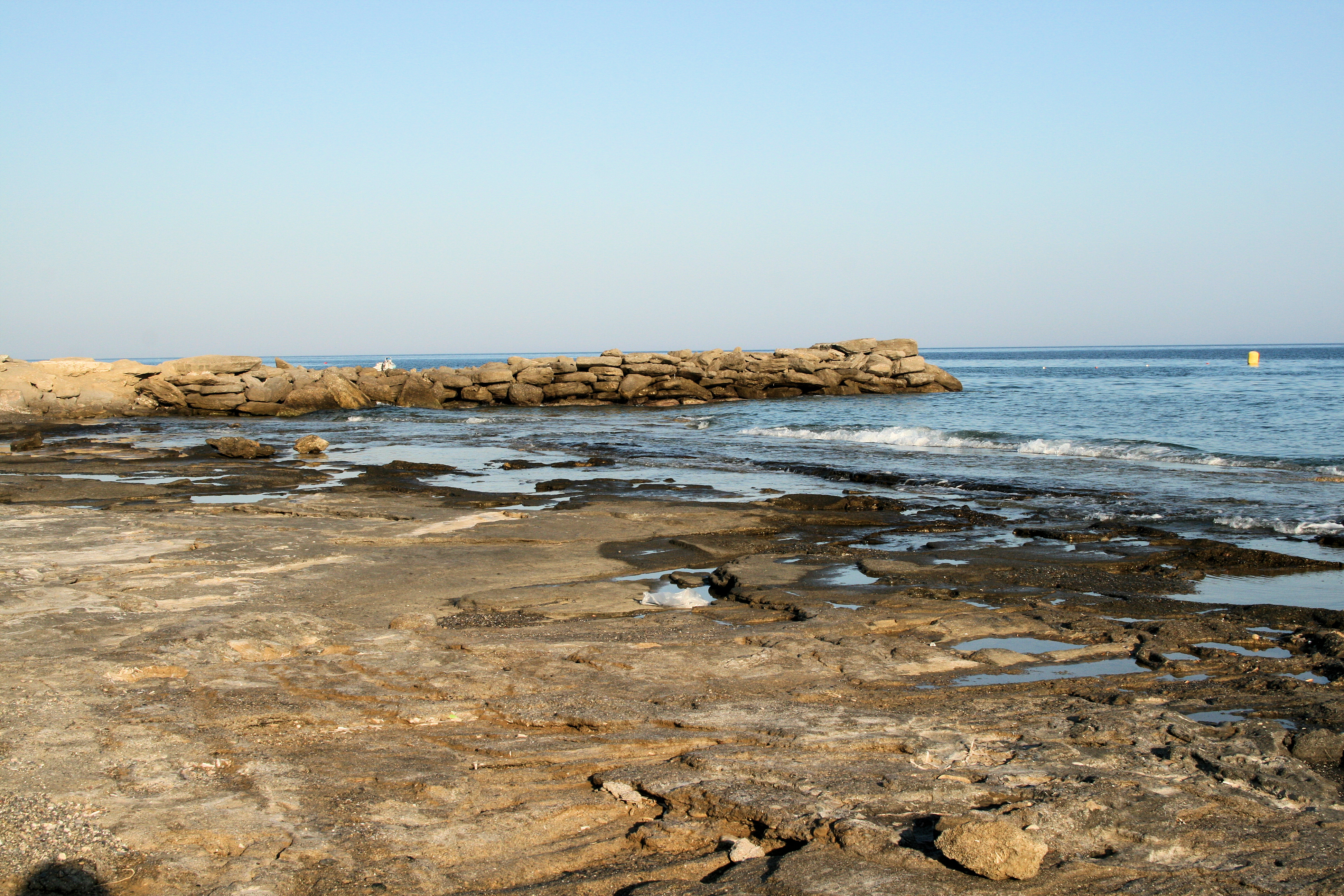 Am östlichen Ende des Strandes gibt es Wassersportmöglichkeiten, diese sind jedoch mit dem Resort verbunden und stehen Gästen möglicherweise nicht zur Verfügung, Ich habe nie gefragt, bin mir also nicht sicher. Der Strand selbst ist kostenlos, aber Sie können die Einrichtungen nutzen? (Pools, Sonnenliegen, etc) wenn Sie 5 € an der Bar ausgeben (Preis ab 2020). Es gibt 2 Kurz vor dem Meer liegen Wellenbrecher, die den Strand schützen und dazu beitragen, das Wasser ruhig und warm zu halten.